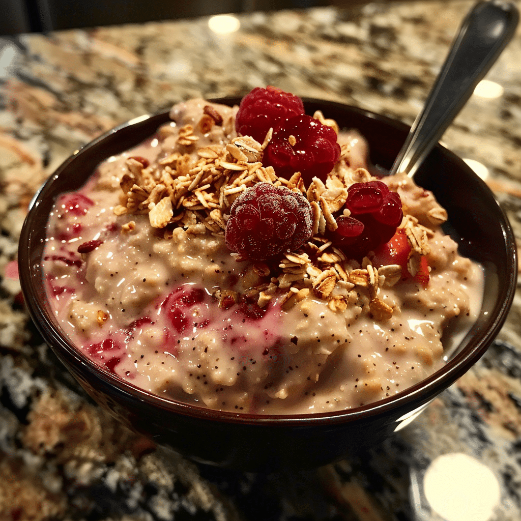 In the morning, stir the oats and add a drizzle of honey or maple syrup if desired. Top generously with crunchy granola and more fresh berries for garnish. Serve chilled straight from the fridge or let it sit for 10 minutes at room temperature if you prefer a slightly warmer texture.