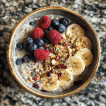 Banana Berry Overnight Granola Oats are a nutritious, make-ahead breakfast that balances creaminess, sweetness, and crunch in every bite. Packed with fiber, protein, and antioxidants, this recipe is both satisfying and energizing, perfect for busy mornings. Its versatility allows you to swap ingredients and customize flavors to suit your taste or dietary needs. Whether topped with granola, drizzled with nut butter, or mixed with seasonal fruits, this dish proves that a healthy breakfast can be as indulgent as it is convenient. With minimal effort and maximum flavor, these overnight oats deserve a spot in your weekly routine.