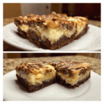 Bake for 30–35 minutes or until the center is set but still slightly fudgy. Cool completely before slicing to help the layers firm up. Serve chilled or at room temperature depending on your preference.