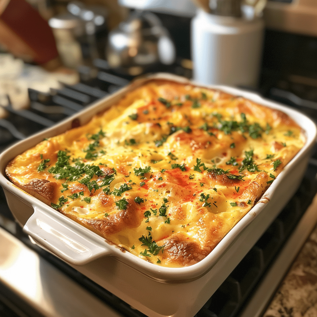 A Cottage Cheese Egg Bake is the kind of dish that feels both wholesome and indulgent—creamy, comforting, and naturally high in protein. The cottage cheese melts seamlessly into the eggs, creating a custard-like texture without the need for heavy cream. It is incredibly versatile, allowing you to add vegetables, meats, or herbs depending on what you have on hand. I once tested this recipe using a reduced-fat cottage cheese to see if it would compromise the texture, and it baked up beautifully—light yet satisfying. This is a reliable breakfast or brunch recipe that works equally well for meal prep, as the leftovers reheat wonderfully. If you enjoy simple, nourishing bakes that require minimal effort, this one will quickly become a staple in your weekly rotation.
