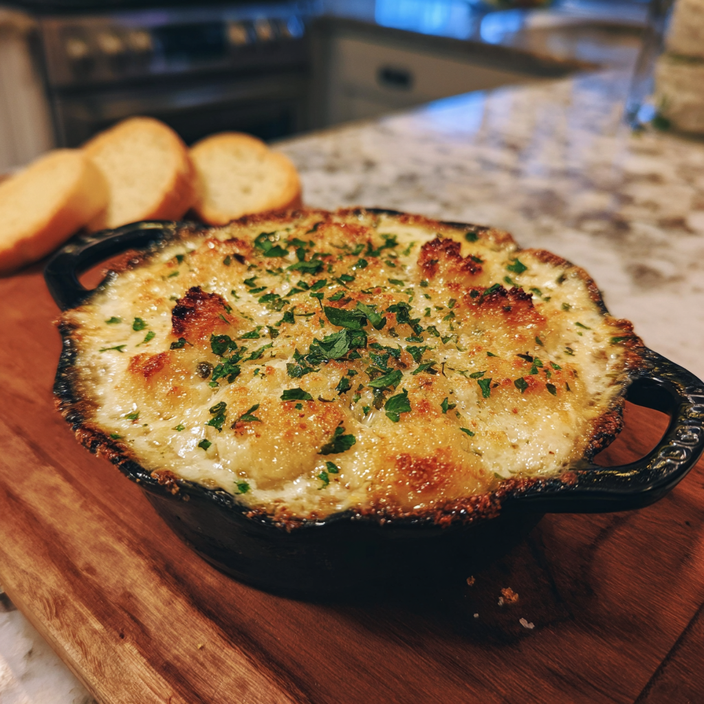 A rich and creamy roasted garlic Parmesan dip blended with smooth cream cheese and baked until bubbly. This savory dip is packed with roasted garlic flavor and perfect for parties or cozy gatherings.