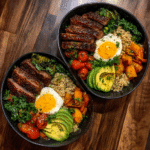 Delicious Mediterranean Steak Bowls bring together tender, flavourful steak with bright vegetables, herbs, grains, and a creamy dressing for a meal that feels both nourishing and satisfying. Each component balances freshness with richness, making these bowls ideal for lunch, dinner, or weekly meal prep. The Mediterranean flavours—lemon, garlic, olive oil, and herbs—give the dish a clean, vibrant character without requiring complicated preparation. I once prepared this recipe using quinoa instead of rice, and the naturally nutty flavour complemented the grilled steak beautifully. These bowls offer endless versatility, allowing you to customise ingredients based on what you have on hand while still maintaining that unmistakable Mediterranean essence.