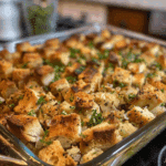 Boxed stuffing mix – The star topping! Savory, herbed, and buttery — it creates that perfect crunchy-soft contrast.