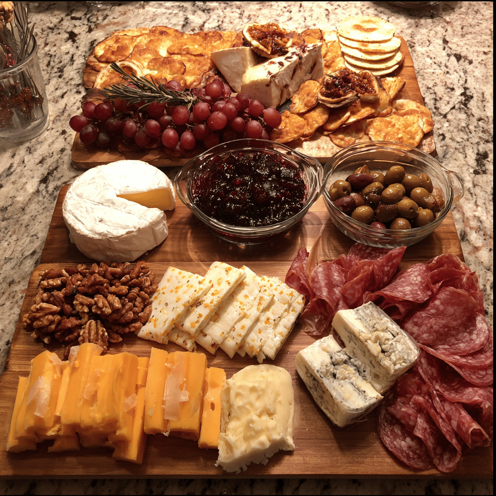 Start by choosing your board—wooden, marble, or slate all work beautifully. Arrange the cheeses first, spacing them evenly around the board. Slice or crumble some for easy access, and keep one or two wedges whole for a rustic look.