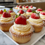 This recipe makes about 12 cupcakes and takes 45 minutes total — 15 minutes of prep, 25–30 minutes of baking, and 10 minutes of cooling. Perfect for dessert or an elegant afternoon tea.