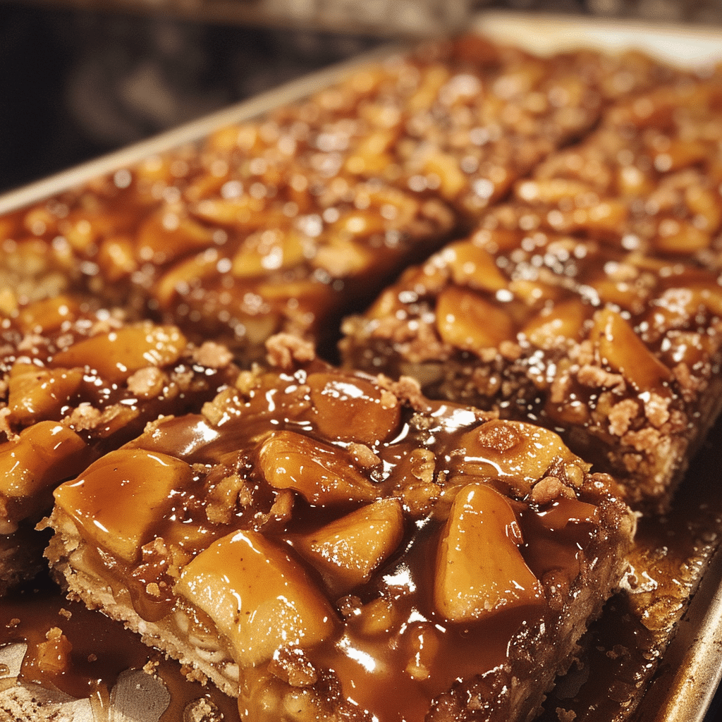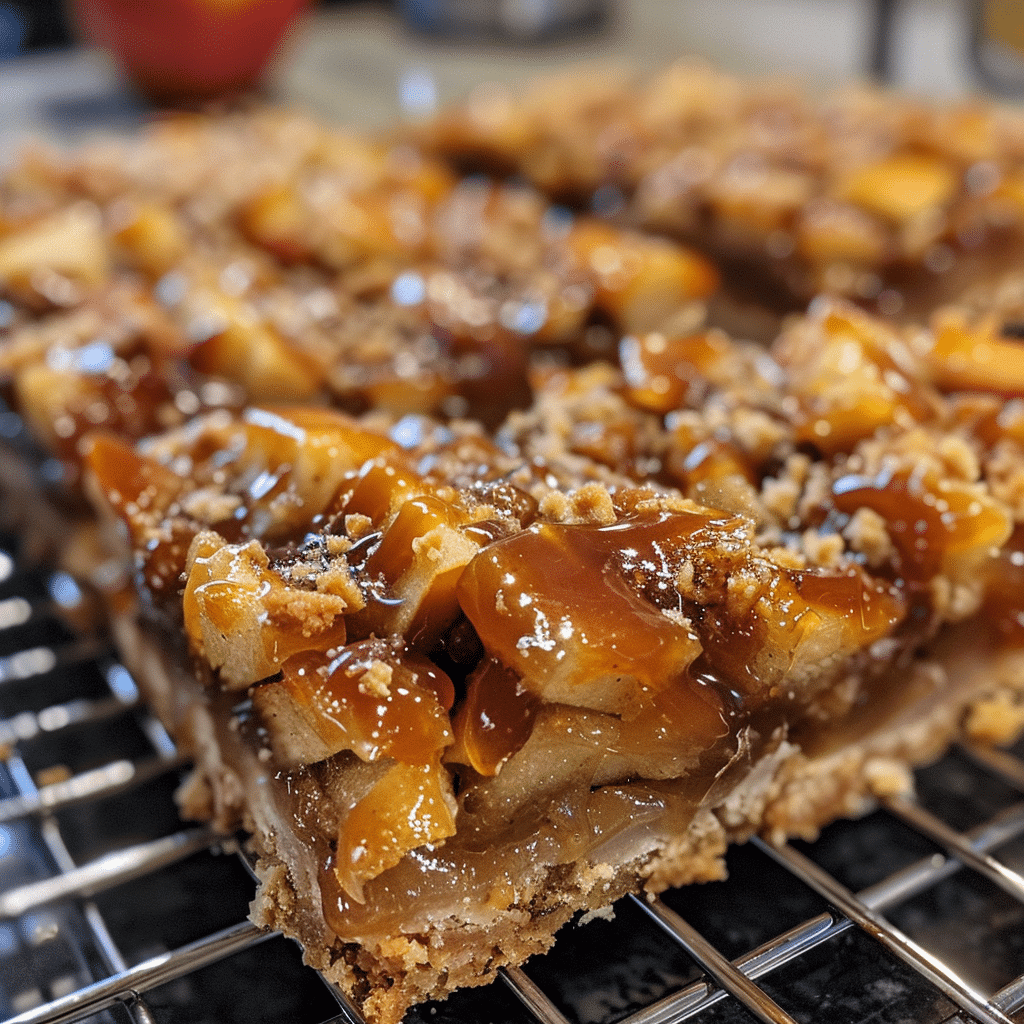 Deliciously gooey salted caramel apple bars layered with buttery shortbread crust, cinnamon-spiced apples, and a drizzle of caramel, making them the perfect fall dessert.