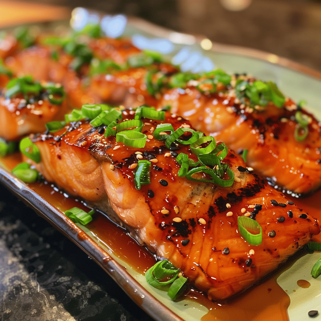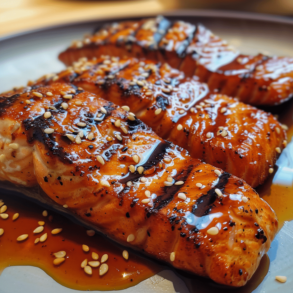 Oven-Baked Version – Instead of grilling, bake the salmon at 400°F for 12–15 minutes, basting halfway through for a similar caramelized finish.