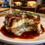 Meatloaf with mashed potatoes and cheese layers takes a beloved classic and turns it into the ultimate comfort food. Instead of serving meatloaf and mashed potatoes separately, this recipe combines them into one layered dish that’s hearty, flavorful, and family-friendly. The savory meatloaf base is topped with a creamy layer of mashed potatoes and finished with melted cheese that turns golden and bubbly in the oven. It’s essentially a cross between traditional meatloaf and shepherd’s pie, with the gooey cheese making it even more indulgent. Perfect for weeknight dinners or Sunday meals, this layered dish is easy to prepare, customizable with different cheeses or seasonings, and guaranteed to be a crowd-pleaser. Serve it with a simple side salad or roasted vegetables for a complete meal. With its layers of savory, creamy, and cheesy goodness, this meatloaf variation will quickly become a household favorite.