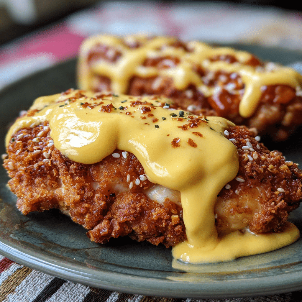 Pretzel Chicken with Mustard-Cheddar Sauce is a delightful twist on classic comfort food. With its crunchy, golden pretzel crust and rich, tangy sauce, it delivers both texture and bold flavor in every bite. Simple enough for a weeknight dinner yet impressive enough for guests, this dish showcases how easy it is to elevate chicken with creative coatings and flavorful sauces. Its versatility allows for endless variations, making it adaptable to different tastes and occasions. Whether served with hearty sides or enjoyed on its own, this recipe is sure to become a favorite for anyone who appreciates crispy, cheesy, and satisfying meals.