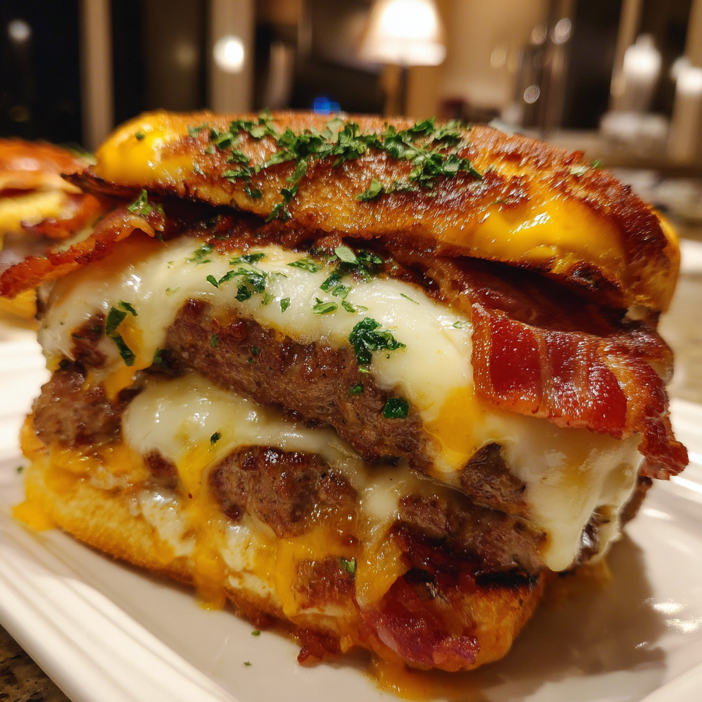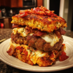 The Bacon Lasagna Burger is an unapologetically indulgent creation that brings together two comfort food icons in one unforgettable bite. Juicy beef patties, crispy bacon, rich marinara, creamy ricotta, and gooey melted cheese are layered together to mimic the flavors of classic lasagna, all stacked inside a hearty burger bun. This recipe was developed for those moments when you want something fun, over-the-top, and deeply satisfying. I tested different cheese combinations and sauce ratios to make sure the burger stayed balanced rather than messy or overwhelming. The result is a burger that tastes unmistakably like lasagna while still holding its own as a proper sandwich. It is perfect for cookouts, game days, or whenever you want to impress guests with a creative twist on familiar flavors.